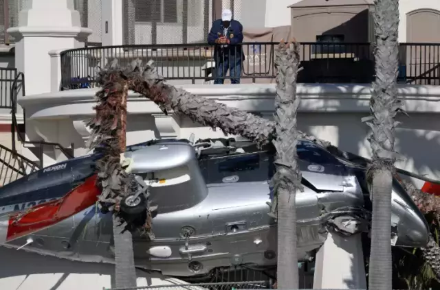 Görüntülerde helikopterin sahil kenarındaki bir otelin yanındaki palmiye ağaçlarına çarptığı görülüyor. Kazanın nedeni henüz bilinmiyor.